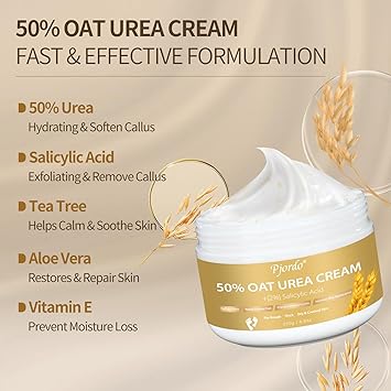 Urea Cream 50 Percent for Feet Maximum Strength with Oat and 2% Salicylic Acid, Foot Dry Cracked Heels Feet, 8.8 oz