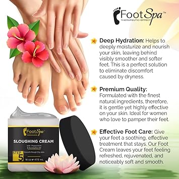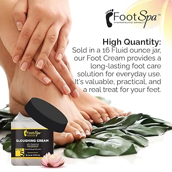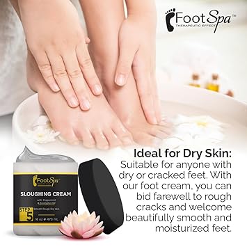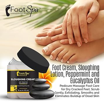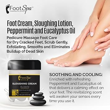 FOOT SPA - Foot Cream, Sloughing Lotion, Peppermint and Eucalyptus Oil, 16 Oz for Dry Cracked Feet, Scrub Gently, Exfoliating, Smooths Eliminates Buildup of Dead Skin