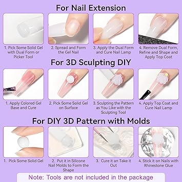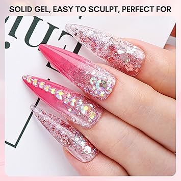 - Easy to Apply and Beginner Friendly--This carving gel for nails is simple to use.The solid texture makes it nonstick-to-hand and easy to manipulate,quick to build the gel nails without sticking to your hands or nail art tools. No mess, no residue. No need for slip solution, monomer liquid, nail forms for acrylic nail kit.It needs to be cured for 60-120s via UV/LED nail lamp