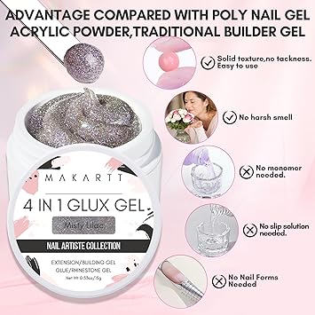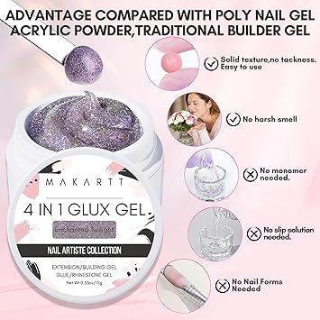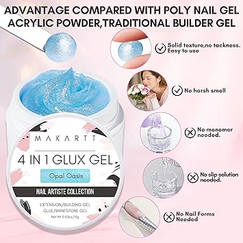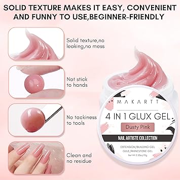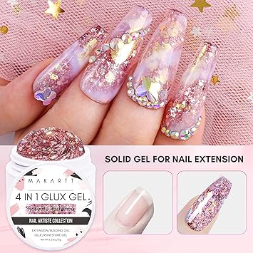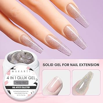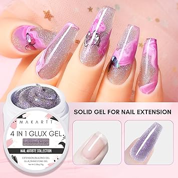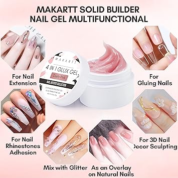 - 4-in-1 Solid Builder Nail Gel--Makartt multifunctional solid gel builder for nails can be used as gel nail builder, nail extension gel, uv nail glue gel for soft gel nails, acrylic nails, gelly tips or clear press on nails, nail rhinestone glue gel and nail sculpture gel for 3D nail art decorations DIY.A money-saving builder nail gel for your professional or daily nail art