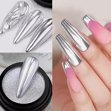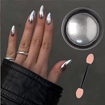 - 【You Will Received】1 jar silver mirror effect nail powder,each jar with 1 sponge stick.Silver mirror nail powder made of resin powder,long-lasting,great for you to create a metallic pearl chrome effect enables you to make any nail art style you want at home.Merry Christmas silver color render the festive mood.