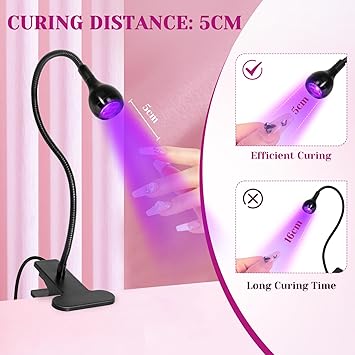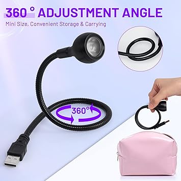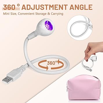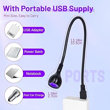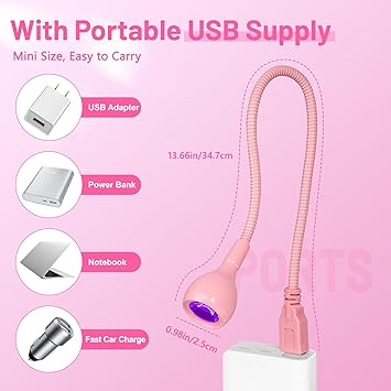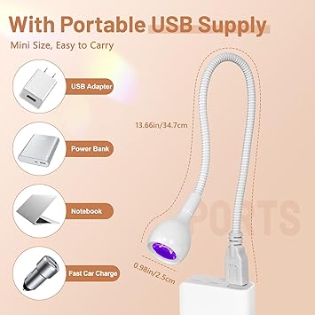 - 【USB Powered Plug Play】AORAEM Duck neck uv nail lamps with 3W Purple LED lamp beads. UV LED nail lamp for gel nails is used with a USB connection to the power supply. Wide range of uses led nail dryer that connect USB on a Notebook, Portable Battery, Charger, PC USB, etc. White LED nail light is easy to use, Plug & Play, so you can light up anytime, anywhere.