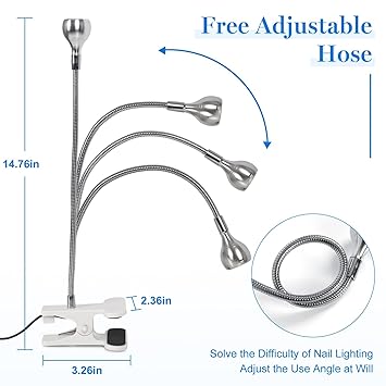- 【Flexible Gooseneck】AORAEM UV LED nail lamps gooseneck are made of metal, so the led nail light for gel nails is durable and does not break easily. Gooseneck nail lamp can be bent in 360 degrees,so you can adjust gooseneck nail dryer to your preferred position and get the perfect white light lamp lighting without any major inconvenience.