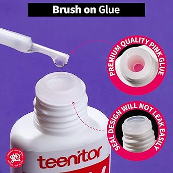 Teenitor Nail Glue for Press Ons, 3 Pack Best Gel Tips with Files, Super Strong Broken Brush on Nails