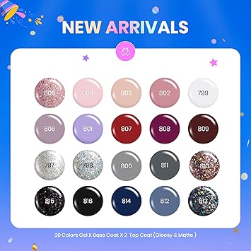 beetles Gel Polish Kit, Nude Gray Pink Blue Burgundy Glitter Set Modern Muse Collection with 3Pcs Base Matte Glossy Top Coat Soak off Uv for Women