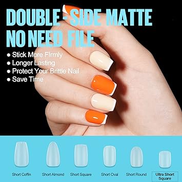 • 【Double-sided Matte, No Need Buffing】 The technical update of TOMICCA double-sided matte design, so that you don’t need to polish nails, reduce the damage to natural nail, increase the friction between the fake nail tips and the natural nail, and be healthier and sturdy.