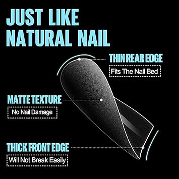 • 【Tough material, Resistant to breakage】 TOMICCA nail tips are made of traceless acrylic material, which is not easy to break and peel off, thin and tough, nontoxic and tasteless, no harm to nails. The pre-shaped nail design also greatly saves the time of polishing the nail’s shape, making the nail art process easier and comfortable. Long last 21 days with proper application.