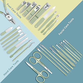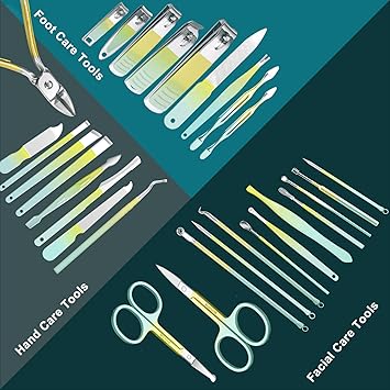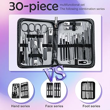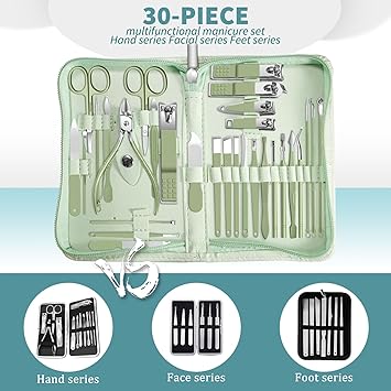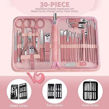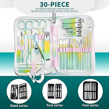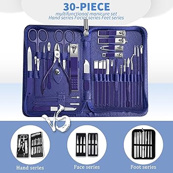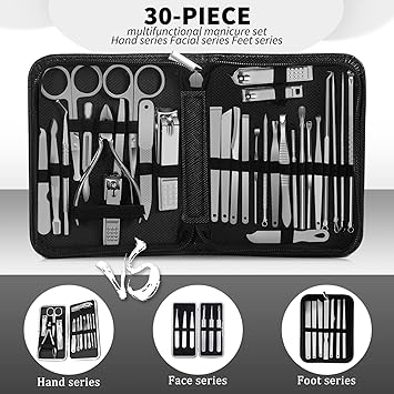 - Manicure and Pedicure Kit: the professional manicure kit contains 30 tools for hand treatments, facials and pedicures. This grooming kit will fully satisfy all your needs