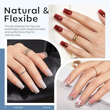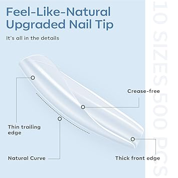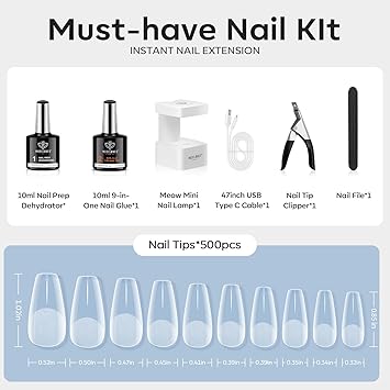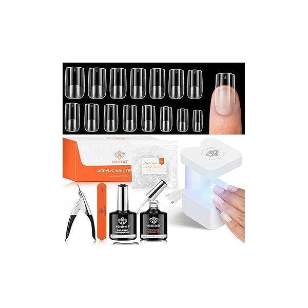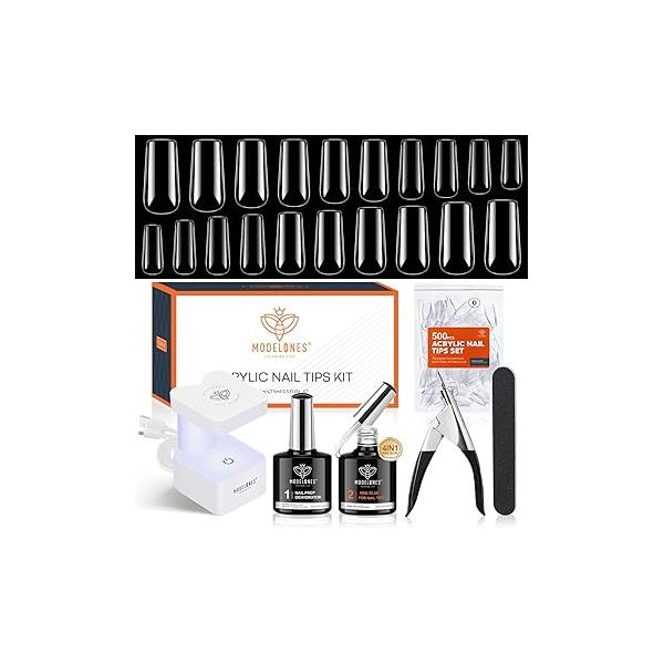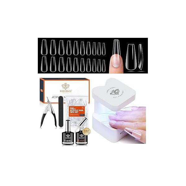 modelones Gel Nail Kit, Fake Nails Long Coffin, 9-in-One Glue Prep Dehydrator & Portable Mini U V Light Acrylic Clipper, 500Pcs Coffin Tips for Extension Kit DIY Salon Home Gifts Women