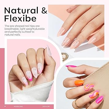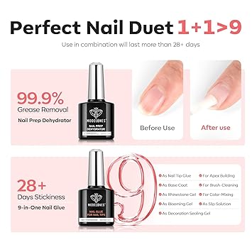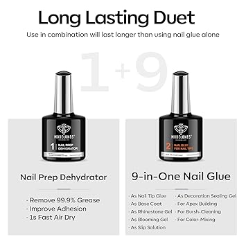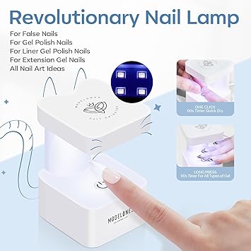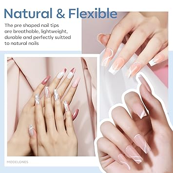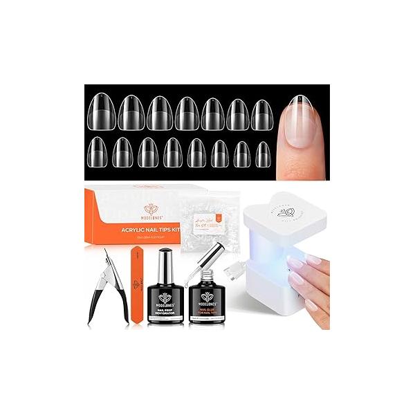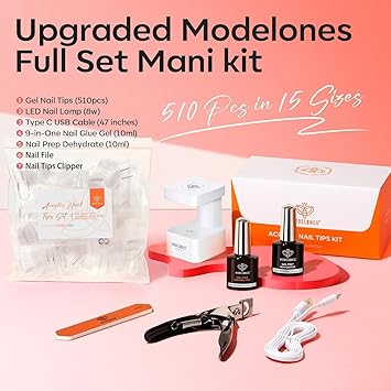 modelones Gel Nail Kit, Fake Nails, 9-in-One Glue Prep Dehydrator & Portable Mini U V Light Acrylic Clipper, Nail Tips for Extension Kit DIY Salon Home Gifts for Women