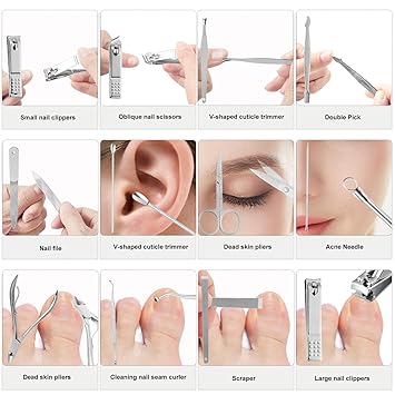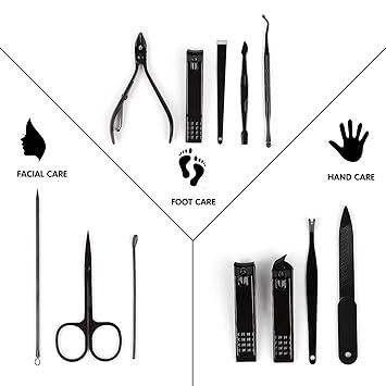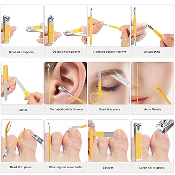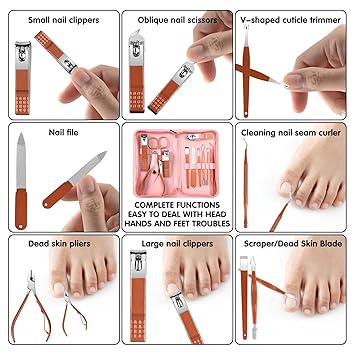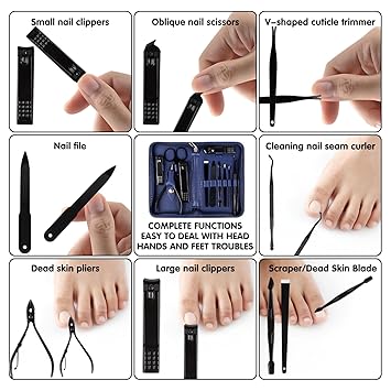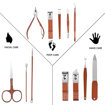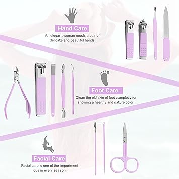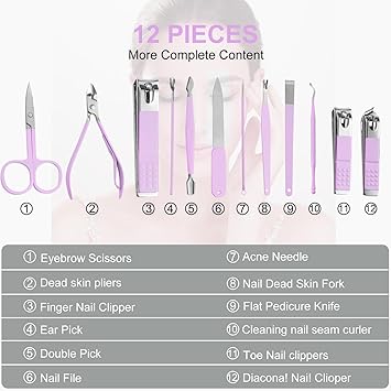 - Manicure Set:manicure and beauty kit contains 12 kinds of care tools for hands and feet,multifunctiona include hand care,facial care,foot care tools,can meet all of you needs, Nail Kit, Manicure Kit, Nail Care Kit For Women.