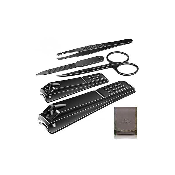 - 【PRODUCT CONTAIN】5 PCS MANICURE KIT---- The nail clippers sets Includes large nail clipper , medium nail clipper, nail file, eyebrow or vibrissac scissors , dig ear spoon. These nail cutter set made of high density stainless Steel. They are the best nail scissors set. cutter clippers scissors Nail