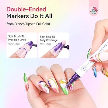 - Versatile Application: Crafted with 903 ink, our nail paint pens offer high saturation and uniform color, providing better coverage even over dark nail polish. The double-ended design makes creating dots, stripes, letters, detailed paintings, and French nails effortless