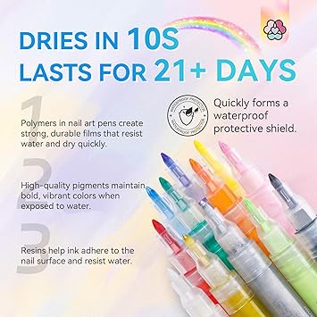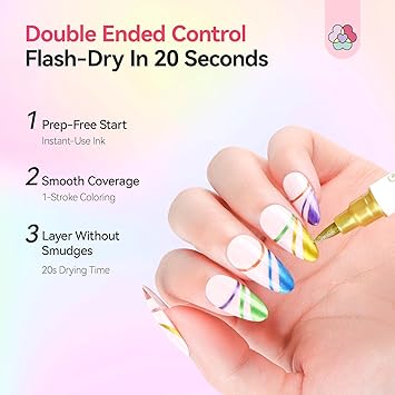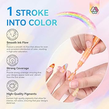 - Warm Tips: Allow your nail art design to dry completely before applying a top gel for better results. Always cap the pen tightly and store it horizontally after use to prevent the ink from drying out. Express your style at home or in nail salons with ease
