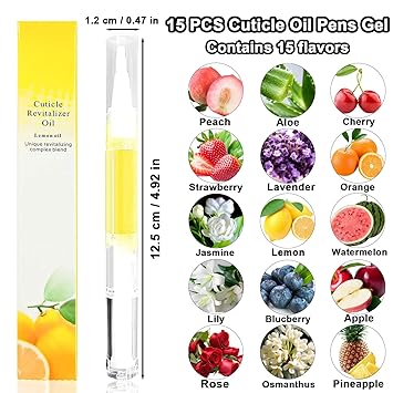 15 PCS Cuticle Oil Pen,Nail Pens for Nails Moist and Treatment,15 Fruit Plant Fragrance Repair Pen Nail Care,Nail Nourishment Polish with Vitamins