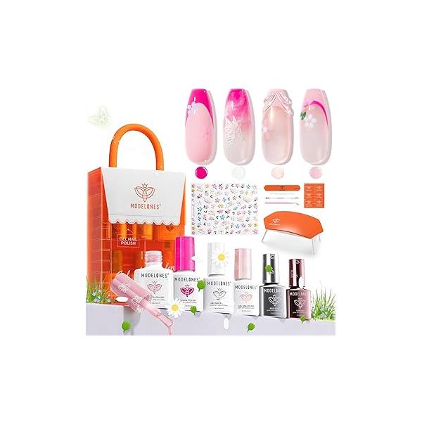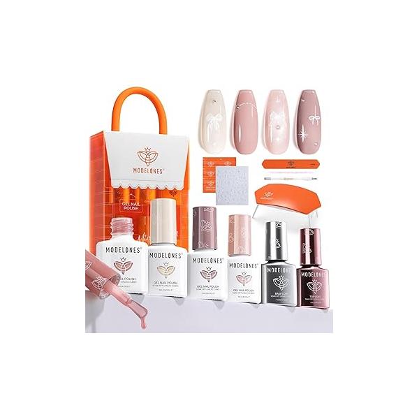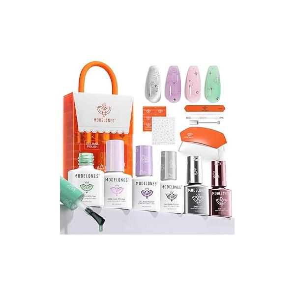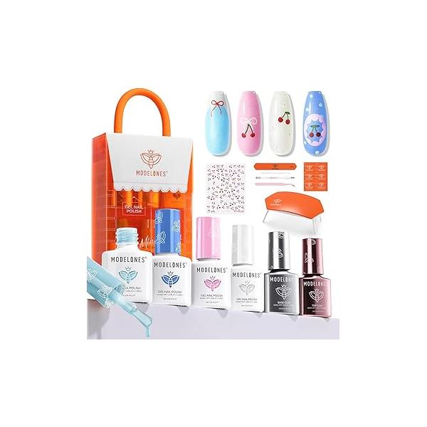 - EASY APPLY & LONG LAST: modelones gel nail polish has a 150° wide brush, make it easy and quick to apply on your nails. The gel nail kit makes choosing your perfect color a breeze with easy-to-identify caps. Silky formula glides on smoothly, delivering rich, natural color for a stunning, effortless look. Dries under U V lamp in as little as 30 seconds, your nails can last ultimate shine up to 28 days