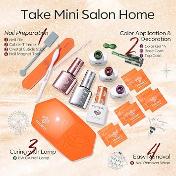 - TAKE MINI SALON HOME: Discover the ultimate nail solution with modelones 4 Colors Gel Mini Salon Kit. Featuring 4 trending shades, base&top coat, 8W nail lamp and everything you need from application to removal, this kit offers a complete salon experience at a fraction of the cost. Enjoy salon-quality nails on-the-go, all in a compact, portable bag that makes storage and travel a breeze