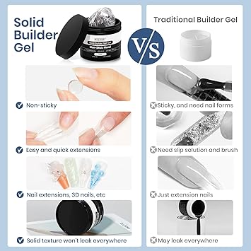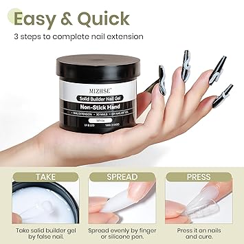 - 100 g Large Capacity Solid Builder Gel: MIZHSE upgraded solid builder gel set contains 100 g (3.5 oz) building gel, 3D mold, double-head silicone pen, 36 pcs nail forms. Due to its solid state, it won't leak everythere. And the builder gel is non-sticky to hands, can just use the fingernails to operate.