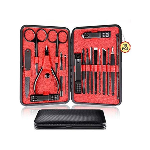 QLNE professional manicure pedicure set 18 Piece with luxurious travel case. The best nail clippers set.