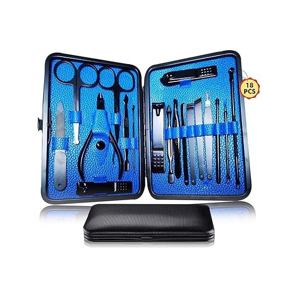 【PRODUCT CONTAIN】The nail clippers set 18 in1 Includes Large nail clipper ,medium nail clipper , oblique nail cutter , manicure plier, Cuticle knife , oblique knife , acne needle , scraper ,nail file , double-headed pick, eyebrow clip , dig ear spoon , spiral Ear spoon , dead skin fork , eyebrow cut, vibrissac Scissors, acne Bowl Needle, Spiral Ear Spoon. The best nail scissors set. cutter clippers scissors Nail