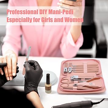 - 【Nice looking set of manicure kit】Lovely rose gold case,portable size,a complete 12-piece manicure and pedicure nail clippers kit, this is a very suitable nail care cutter tools for girls and women.We also have a brown stainless steel heavy-duty manicure set of this style suitable for men.