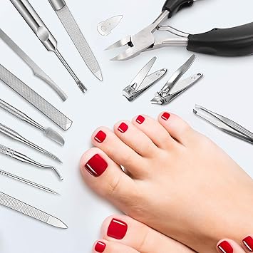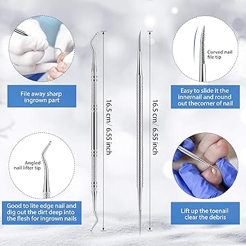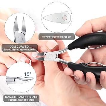 15 Pieces Ingrown Toenail Tools Stainless Steel Foot Nail Tools, File and Lifter, Clipper, Cuticle Cutters, Pusher Manicure Pedicure for Thick (Black)