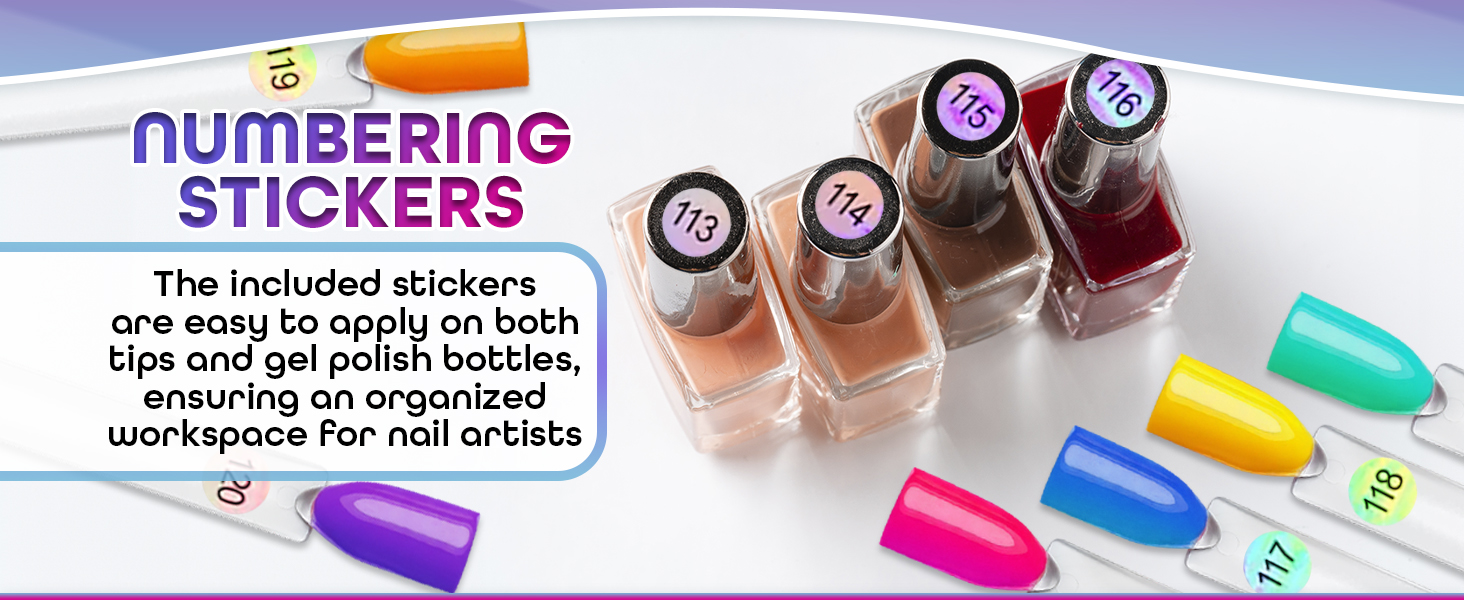 Nail Polish Swatch Sticks with Number Stickers - 200Pcs Rings Clear Display Color Practice Plastic