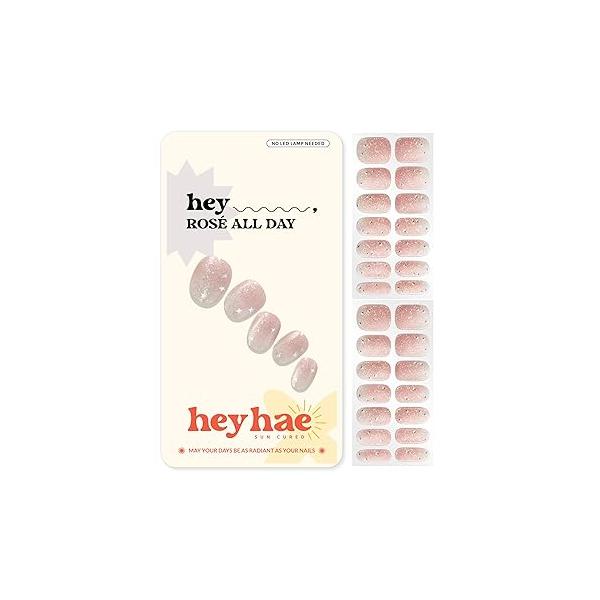 Semi Cured Gel Nail Strips | No LED Lamp Needed Glitter, Purple, Spring Easy Apply & Remove, Salon Quality |Includes 28 Strips, 1 Prep Pads, File Wooden stick - Hey, 7 A.M. Tomorrow?