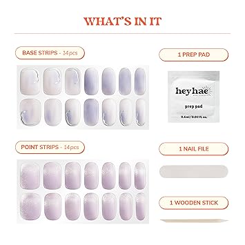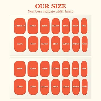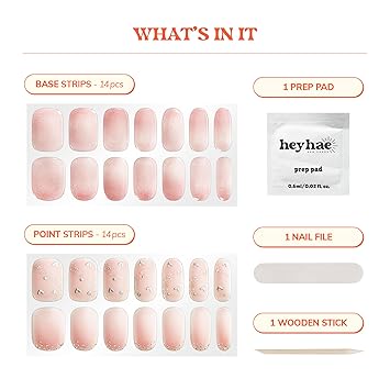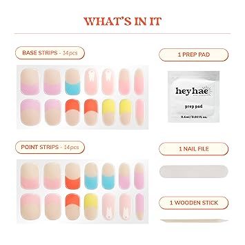 • Fits all nail size and shapes - Use your palm to warm them up. Once the strips are warmed, they can be easily pulled for the perfect fit on your nails. Attach the nail strip along one side of the nail, and then stretch it to fit the other side of the nail.
