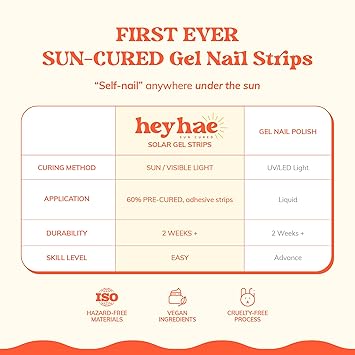 • Simple and fast cure! NO LED Lamp needed! Sun-cured Gel Nails - Simply let it cure by itself under the sunlight (UV Index 3+). **Curing time under sunlight can vary depending on various factors such as weather conditions, environmental factors, and humidity levels. No natural sunlight? No worries. Cure it under UV/LED lamp just for 5 seconds!