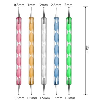 • Double-ended Nail Dotting Pens: each is end with a large ball and another end with a small ball for various size dotting.