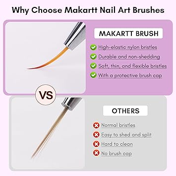 - QUALITY NAIL ART TOOL: Made of high-quality nylon fiber hair, alloy pen holder, crystal, and acrylic handle, Makartt nail detail brushes and dotting pens are handy, portable, and durable, equipped with a cap to preserve the bristles from dust and protect thin nail art brush hair against falling off. In addition, the nail polish brushes for nail art are easy to clean. Just clean the bristles with a mild cleanser.