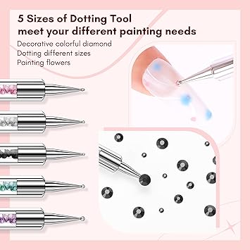 - NAIL DOTTING TOOL FOR NAIL ART: With a nail dotting pen, you can create nail art designs with different dot patterns and flower patterns, and easily and accurately select nail rhinestones, nail glitters, or nail glitters to add highlights to your 3d gel nail art design. Our dotting pens come in different spherical sizes, making it convenient for you to choose different sizes of rhinestones when doing nail art.