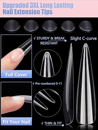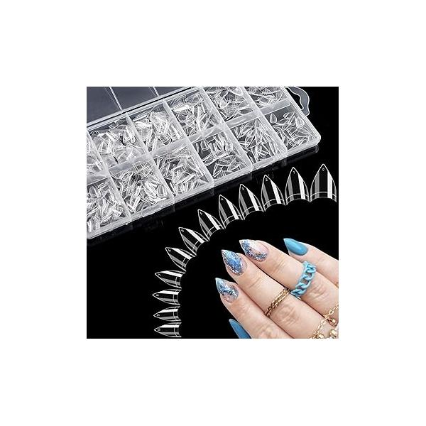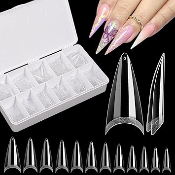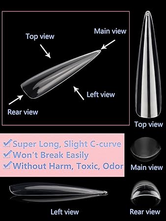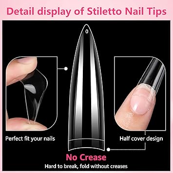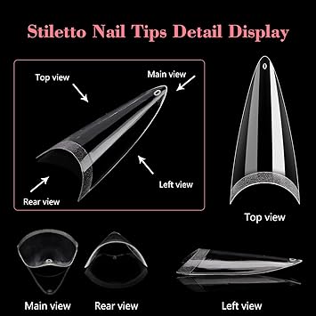 - 【Easy to Color and Eye-Catching】Clear nail tips is unique for its short and stiletto style.short stiletto nail tips are easy to color and keep the color well without separating or exposing. Short stiletto nail tips can solve many natural nail defects. Acrylic short stiletto nail tips is more suitable for daily use than the long stiletto nail tips.