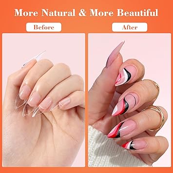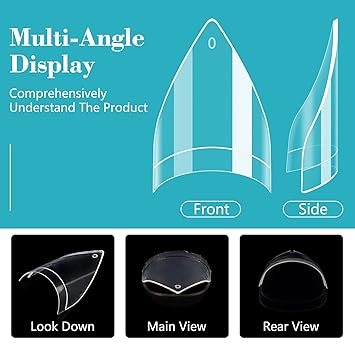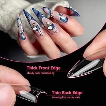 - 【Infinite Creative Space】The acrylic nail tips are designed with thin leading and thick trailing edges, providing a super fit to your nails. The surface of fake nails is smooth and transparent, and you can add rhinestones and other decorations to DIY design your favorite pattern style, creating your dream nail style and helping you become the focus of the crowd.