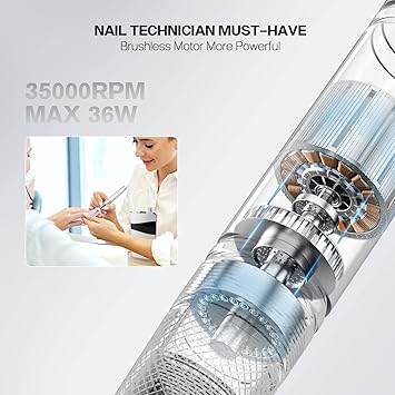 - 【New Powerful Brushless Motor】This electric nail drill machine comes with a brushless motor, which enables it to work at a high, adjustable and stable speed (0-35000RPM) by rotating the speed control knob easily, our professional naill drill can enhance your overall nail cutting, shaping, filing and cuticle removal experience.