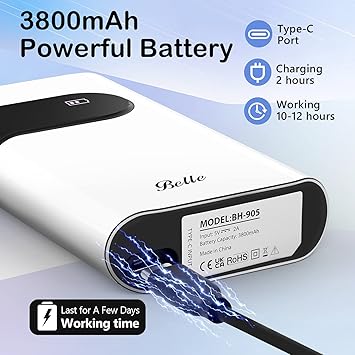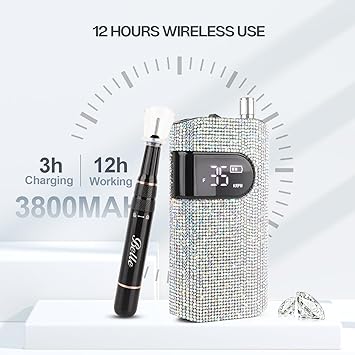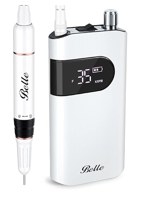 - 【Rechargeable & Cordless】Belle cordless nail drill boasts a long-lasting 3800 mAh battery, lasting up to 12 hours, and a lifespan of over 15,000 hours of operation with an intuitive one-touch button to switch direction and a pause key for nail drill bit replacement. Its LED display also shows suitable RPM and accurate battery.