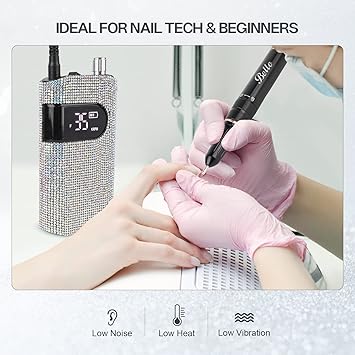 - 【Professional-Grade Performance and Ergonomics】The portable nail drill features low heat, low noise, and super low vibration technology for user comfort. And the dust shield of this naill drill keeps your workspace clean. It is an ideal nail file for professional technicians in-salon.
