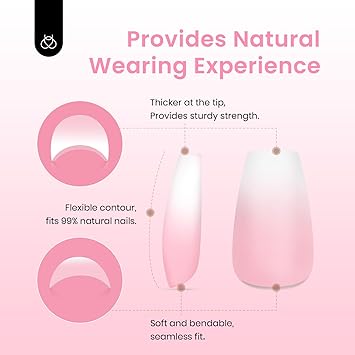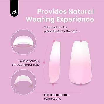 - 【Long Lasting 30+ Days】The coffin Press on technology boasts strong adhesion and unmatched durability, keeping patterns intact without any signs of wear or peeling. With proper application, the french tip press on nails can last for over 30 days. Adding other nail art designs to these press on nails is also a great option. For optimal durability, we recommend coating the false nail tip with Beetles builder gel and top gel.
