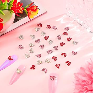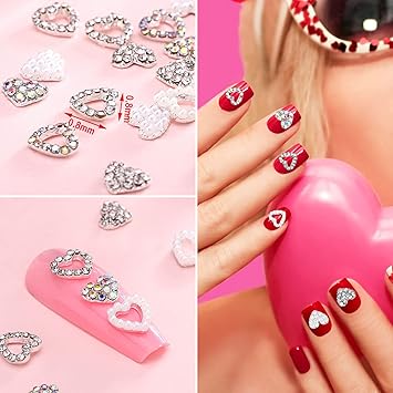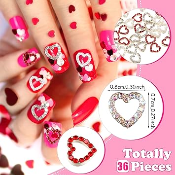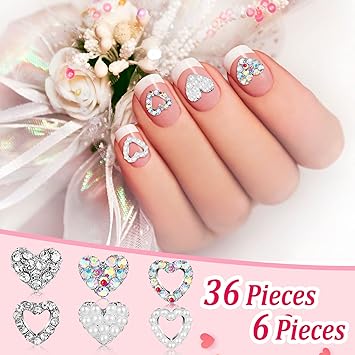 36 Pcs Heart Nail Charms for Art, 3D Rhinestone Decals Silver Crystal Diamond Alloy Gems Decorations Women Valentine's Decoration