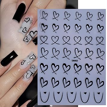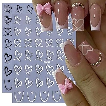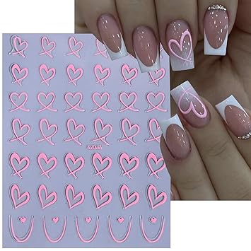 Heart Nail Stickers for Art Love Decals French Lovers Wavy Line Design 3D Self-Adhesive Hollow Peach Shaped Sticker Women Valentine Gift Decoration