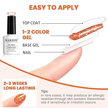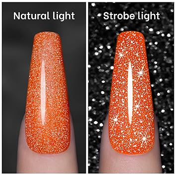 RARJSM Orange Gel Nail Polish, 1Pcs 7.5ml Color Reflective Polish Soak Off Neons Spring Summer Diamond Shimmer Art Manicure Salon DIY at Home