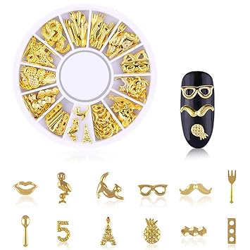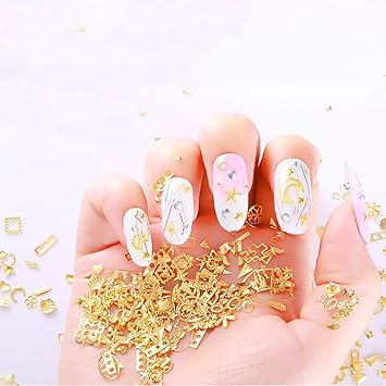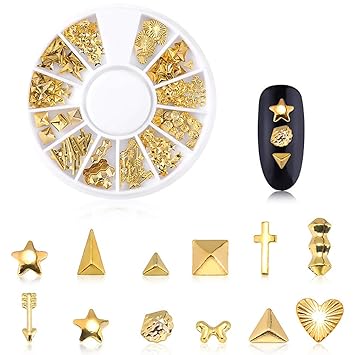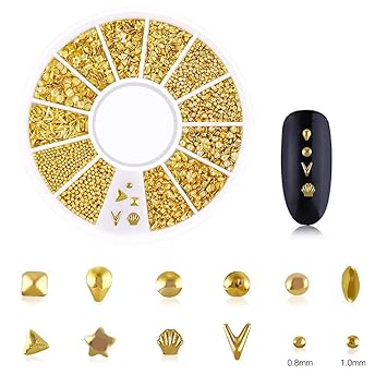 - Gold stereoscopic and hollow metal nail studs with rectangle box