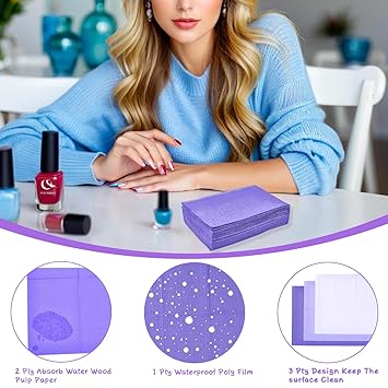 Three-layer design: The disposable nail mat is made of double-layer wood pulp and PE film, which is not easy to break. Three-layer construction, soft yet strong.