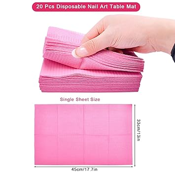 20 Pcs Disposable Nail Art Table Mats,3 Ply Napkins for Acrylic, Mat Paper Sheet, Waterproof Tips Home Salon