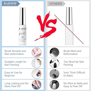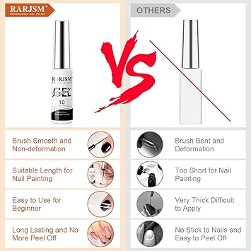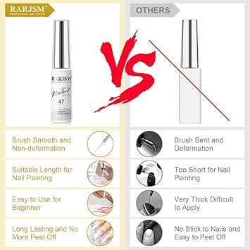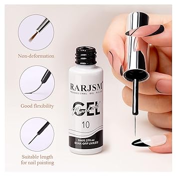 - SMOOTH FORMULA:RARJSM soak off nail art gel is made of smooth formula and the brush is slim and sharp to draw any pattern.This painted gel nail polish is easy to hand painted,drawing flowers,sumi,pull the line,dotting,striping,etc.These features can help us to get nail art like geometric nails,french manicure nails