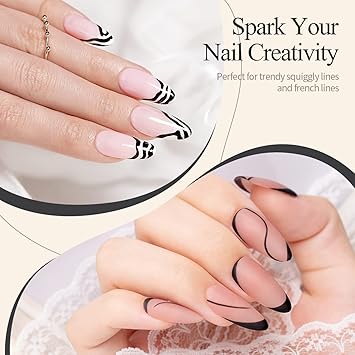 - BUILD IN THIN BRUSH:New design with the painted gel nail polish and the pull line pen combine,it is super convenient for the salon beauty salon or at home personal use for starters.Each bottle has a thin pen brush,no need to change and wash clean the drawing liner pen brush when doing the nail art
