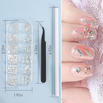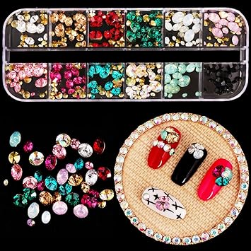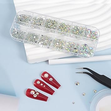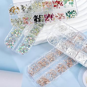 WOKOTO 4 Box Mix-Style Nail Crystals Rhinestones Silver Rose Gold Studs Charms For Women Art Colorful Pointed Fake Diamonds And Flatback Ab Kit With Tweezers Picker Pencil