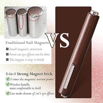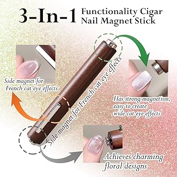 Nail Magnet Tool, 3 in 1 Cat's Eye Powerful Stick for Cat Gel Polish Flower Line Flat Multi-Purpose Length Home Salon DIY