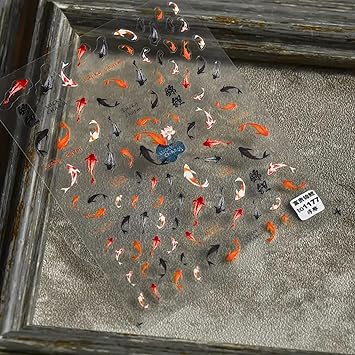 5D Red Fish Nail Stickers Relief Koi Goldfish Art Self Back Adhesive Chinese Style Decals for Women Girls Accessories DIY